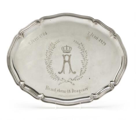2545/8037LyngbyA German Silver dish, engraved for Grand Duchess Alexandra of Mecklenburg-Schwerin 1929. L. 45 cm.