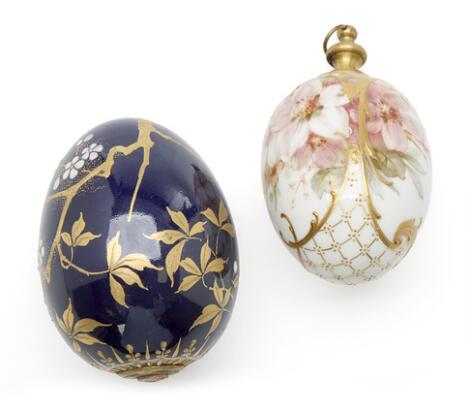 2545/8052LyngbyTwo German porcelain perfume bottle eggs. The Royal Porcelain Factory in Berlin, late 19th century. (2)