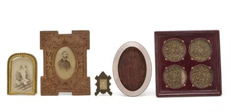 2545/8022LyngbyFive frames; silver/enamel, gilt-metal, wood, leather, metal. Some with princely photographs. 19th-20th century. (5)