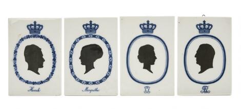 2545/8034LyngbyFour porcelain plaques with Danish royal portraits. Royal Copenhagen. C. 1967. 13 x 9 cm. (4)