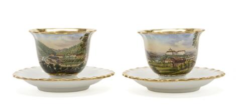 2545/8038LyngbyTwo pair of prospect porcelain cups; motifs of Ballenstedt and Alexisbad. Gotha Porcelain Factory 1860-1883. (4)