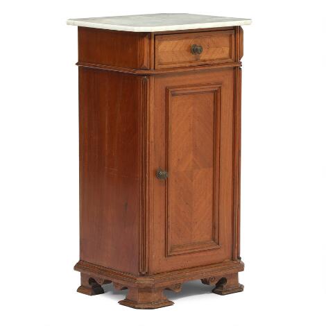 2545/8021LyngbyA mahogany bedside table with white marble top. Late 19th century. H. 77 cm. W. 40 cm. D. 40 cm.