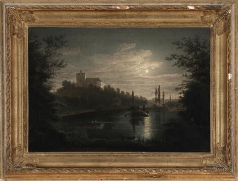 2545/8039LyngbyRaphael Carl Reinhard: Moonlight at Ballenstedt Castle. Signed R. Reinhard. Oil on canvas. 49 x 72 cm.