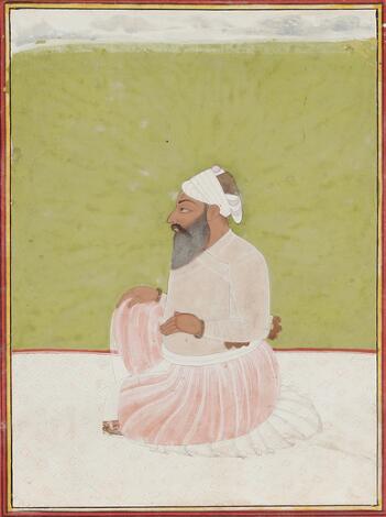 2545/4031LyngbyPortrait of a seated nobleman, Gouache and gold on paper. Jaipur? 19th century. 21 x 15 cm.