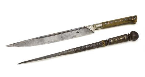 2545/4004LyngbyOttoman kard and a steel throving knife. 18/19th century. L. 24/27 cm. (2)