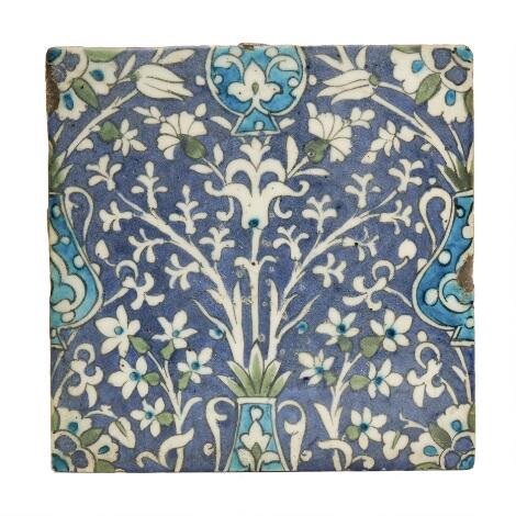 2545/4002LyngbyA 17th century Damascus pottery tile decorated with flowers and design. 23 x 23 cm.