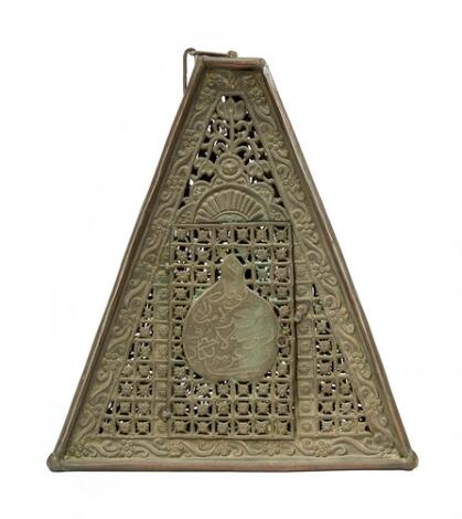 2545/4003LyngbyOttoman pierced brass lantern. 19th century. Glass missing. H. 31 cm.