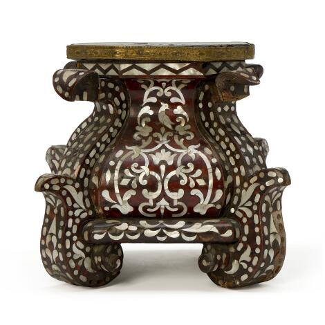 2545/4009LyngbyA Damascus mother-of-pearl inlaid wood occasional table and a mother of pearl inlaid console. Syria, late 19th Century. H. 21/51 cm. (2)