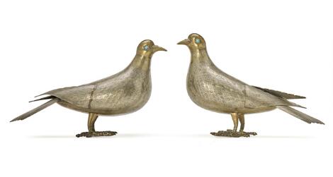 2545/4044LyngbyA pair of 19th century Ottoman silver pigeons with eyes of turquise stamped 84. Weight 550 gr. L. 20 cm. (2)