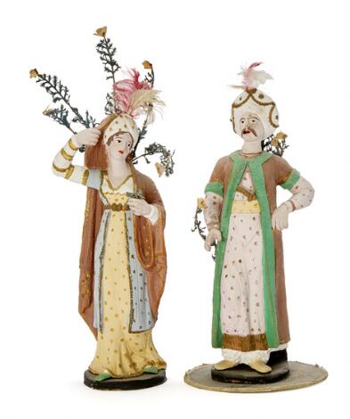2545/4035LyngbyPair of pottery figurines in shape of Turks. 19th century. Damages. H. 28 cm. (2)