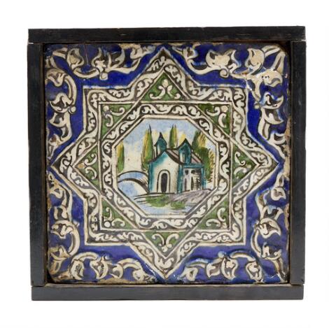 2545/4034LyngbyA 19th century Iranian Qajar pottery tile with molded relief. 27 x 27 cm.