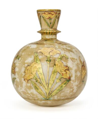 2545/4046LyngbyAn Islamic stile glass mosque lamp enammeled in colours and design with pseudo calligrafy, Fritz Heckert, Poland 19th century. H. 20 cm.