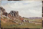 Italian mountain landscape. Unsigned. Oil on paper laid on canvas. 22×33 cm. Unframed.