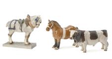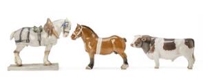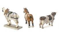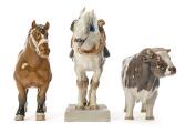 A percheron porcelain figure. 471. Royal Copenhagen. Further a Belgian stallion. 2234. And a bull. 2121. Bing & Grøndahl. (3)
