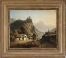 View from a mountain village with a running river. Signed and dated I. P. 1850. Oil on paper laid on cardboard. 25×31.5 cm.