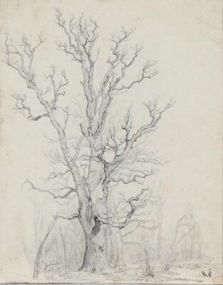 A large naked tree. Signed J. C. Reinhart. Pencil on paper. Sheet size 37×26.5 cm. Unframed.