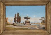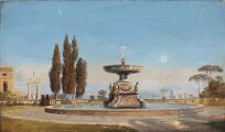 View from the square in Arricia outside Rome. Unsigned. Oil on canvas. 18×30 cm.
