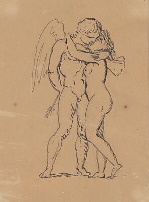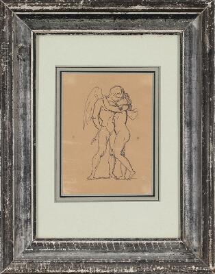 Amor and Psyche. Unsigned. Drawing ink on paper laid on paper. Sheet size 11×8 cm.
