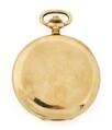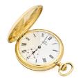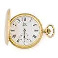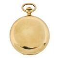 Hunter case pocket watch of 18k gold. Mechanical movement with lever escapement and crown winding, cal. 962. White dial with black hands. Dust cap of gilt metal. Ø 52 mm. The watch weighs approximately 100.5 grams. 1979.